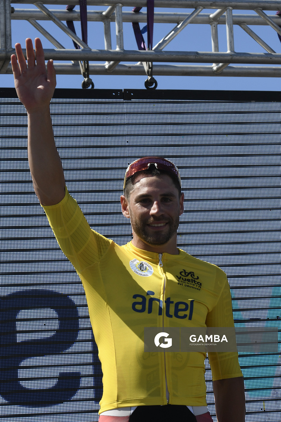 Sandro Pereyra-20260327SP-0./Leonel Rodríguez, de Club Náutico y de Pesca Boca de Cufré, malla oro Etapa 2 San José – Paso de los Toros sobre 198,7 km., de la 81ª Vuelta Ciclista del Uruguay el 27 de marzo de 2026. / Foto: Sandro Pereyra, Agencia Gamba.-