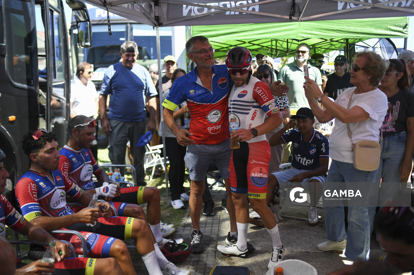 Sandro Pereyra-20260326SP-0./Leonel Rodríguez, de Club Náutico y de Pesca Boca de Cufré en el gasebo de su equipo Etapa 1 Montevideo – San José sobre 135 km. De la 81ª Vuelta Ciclista del Uruguay, el 26 de marzo de 2026. / Foto: Sandro Pereyra, Agencia Gamba.-