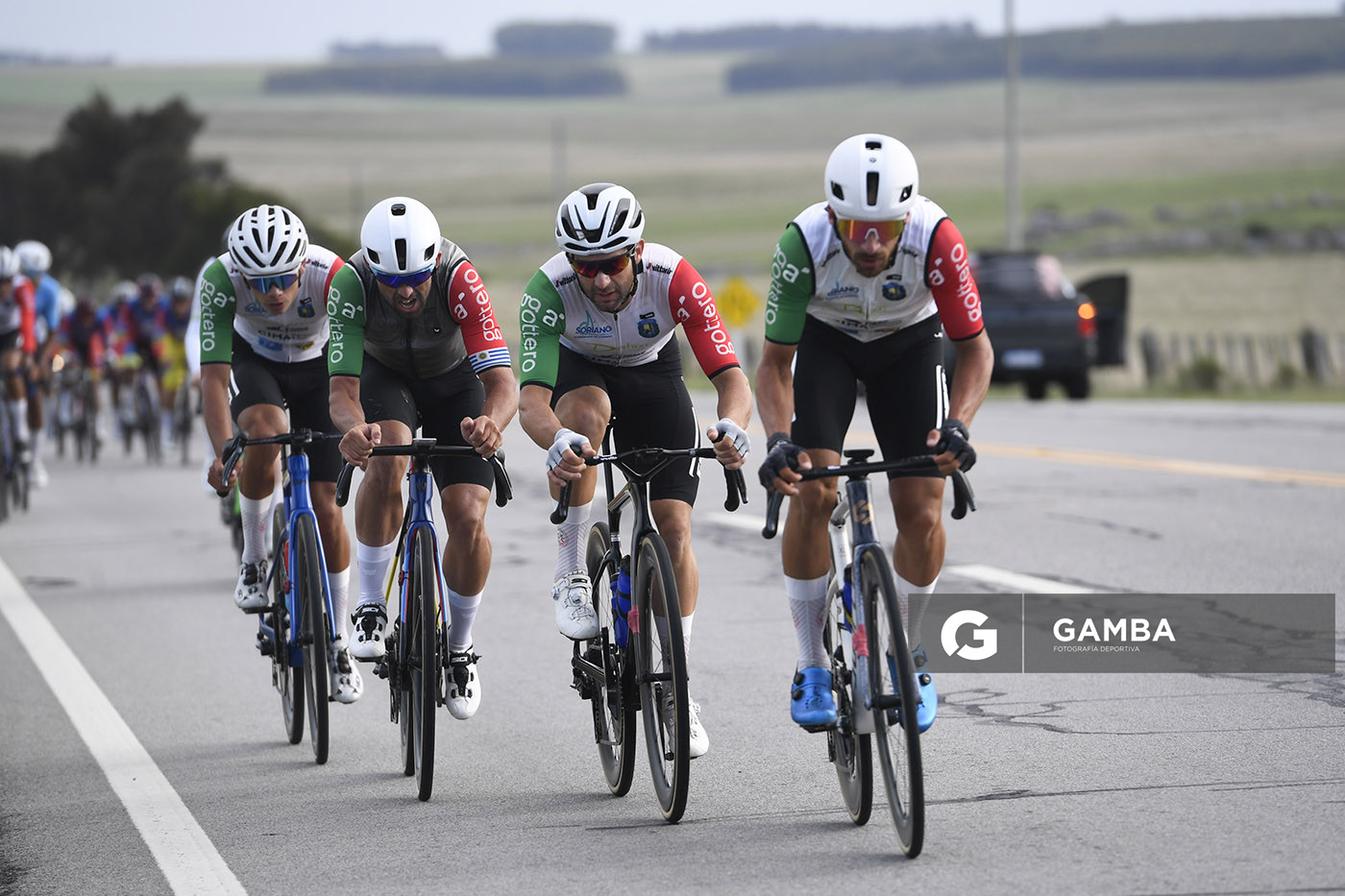 Sandro Pereyra-20260405SP-0465./ Lucas Gaday, Germán Fernández, Roderyck Asconeguy y Lucas Ferreira, de Dolores Cycles Club. Etapa 11 Trinidad – Montevideo sobre 190,6 km de la 81ª Vuelta Ciclista del Uruguay el 5 de abril de 2026. / Foto: Sandro Pereyra, Agencia Gamba.-