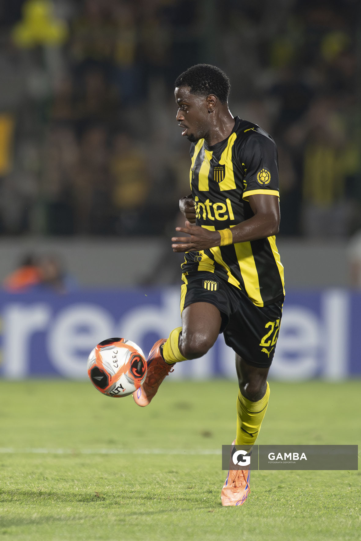 Fernando Morán-20260215FM-0315./ Luis Angulo, de Peñarol, durante el partido Central Español vs Peñarol por la segunda fecha del Torneo Apertura de la Liga AUF Uruguaya 2026 «Juan Carlos De Lima», el 15 de febrero de 2026 en el Estadio Domingo Burgueño, en Maldonado. / Foto: Fernando Morán, Agencia Gamba.-