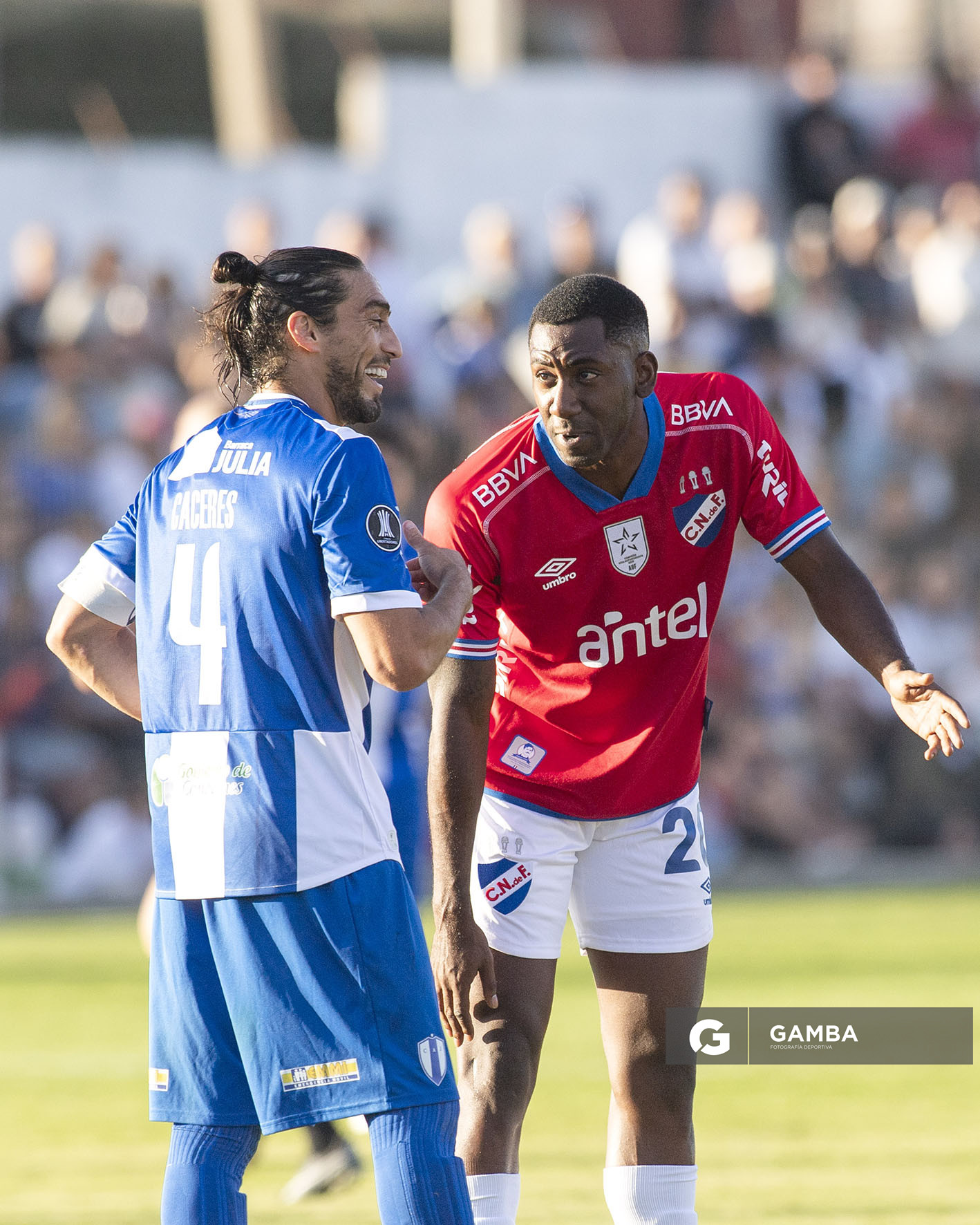 Fernando Morán-20260308FM-0619./ Martín Cáceres, de Juventud, Gonzalo Carneiro, de Nacional, durante el partido Juventud vs Nacional por la quinta fecha del Torneo Apertura de la Liga AUF Uruguaya 2026, el 8 de marzo de 2026 en el Estadio Parque Artigas, en Las Piedras. / Foto: Fernando Morán, Agencia Gamba.-